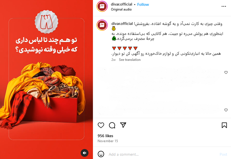 متن تبلیغاتی دیوار در اینستاگرام با لحنی گیرا، دوستانه و مرتبط با نیازهای مشتریان نوشته میشود و با تمرکز بر روی اهدف مختلفی، سعی در جذب مخاطبان هدف خود دارد.