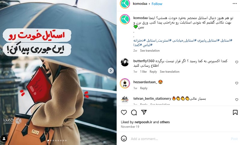 کمدا یکی از برندهایی است که کمتر از متن تبلیغاتی مستقیم استفاده میکند و از داستان سرایی برای رساندن هدف خود به مخاطبان استفاده میکند.
