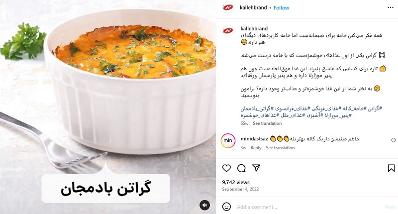 برند کاله با استفاده از آموزش آشپزی با استفاده از محصولات خود به تبلیغات متنی و ویدئویی میپردازد و در این زمینه بسیار موفق عمل کرده است.